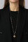 COLT - is a an elegant and unusual pendant necklace. Pendant is designed with multible smaller and larger round facet cut crystal chatons, asymmetrically set in a round pattern. Truly a remarkable design. Total lenght 80 cm. Body made in polished brass -chain designed in stainless surgical steel. Here shown in golden colours and gold tone finish. DANISH DESIGN - free of cadmium, lead and nickel.
