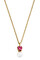 COLUME - an elegant chain made with a prong- set heartshaped crystal pendant topping a round white imitation pearl. Total length about 42 cm and 5 cm extension chain. Chain made in stainless steel, pendant in polished brass. Here shown in gold tone finish with rose colored crystals. Nickel free Danish design.