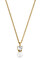 COLUME - an elegant chain made with a prong- set heartshaped crystal pendant topping a round white imitation pearl. Total length about 42 cm and 5 cm extension chain. Chain made in stainless steel, pendant in polished brass. Here shown in gold tone finish with sparkling white crystals. Nickel free Danish design.