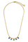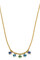 PHILA an elegant chain made with five rounded facet cut crystals as pendants. Total length about 42 cm and 5 cm extension. Chain made in stainless steel, pendants in polished brass. Here shown in gold tone finish with aqua blue crystals. Nickel free Danish design.