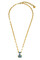 TANZY an elegant neck-chain where pendant features multible crystal of various sizes. Total length about 45 cm and 5 cm extension. Chain made in stainless steel, pendants in polished brass. Here shown in gold tone finish with a mix of aqua blue and green crystals. Nickel free Danish design.